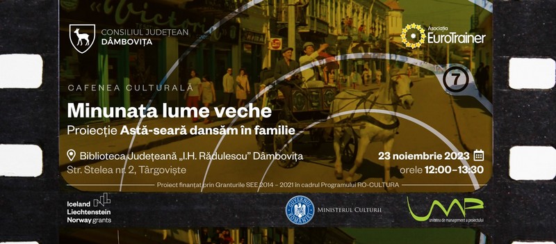 O invitație la film: ”Astă seară dansăm în familie”, în regia lui Geo Saizescu, în spațiul generos al Bibliotecii Județene din Târgoviște, ce ne oferă ocazia de a revedea străzi ale orașului Târgoviște care astăzi nu mai sunt și de a reconstitui fragmente din ”lumea veche”. Un bun prilej pentru participanți de a (re)trăi atmosfera și ritmul acelor vremuri și de a depăna amintiri la o cafea.